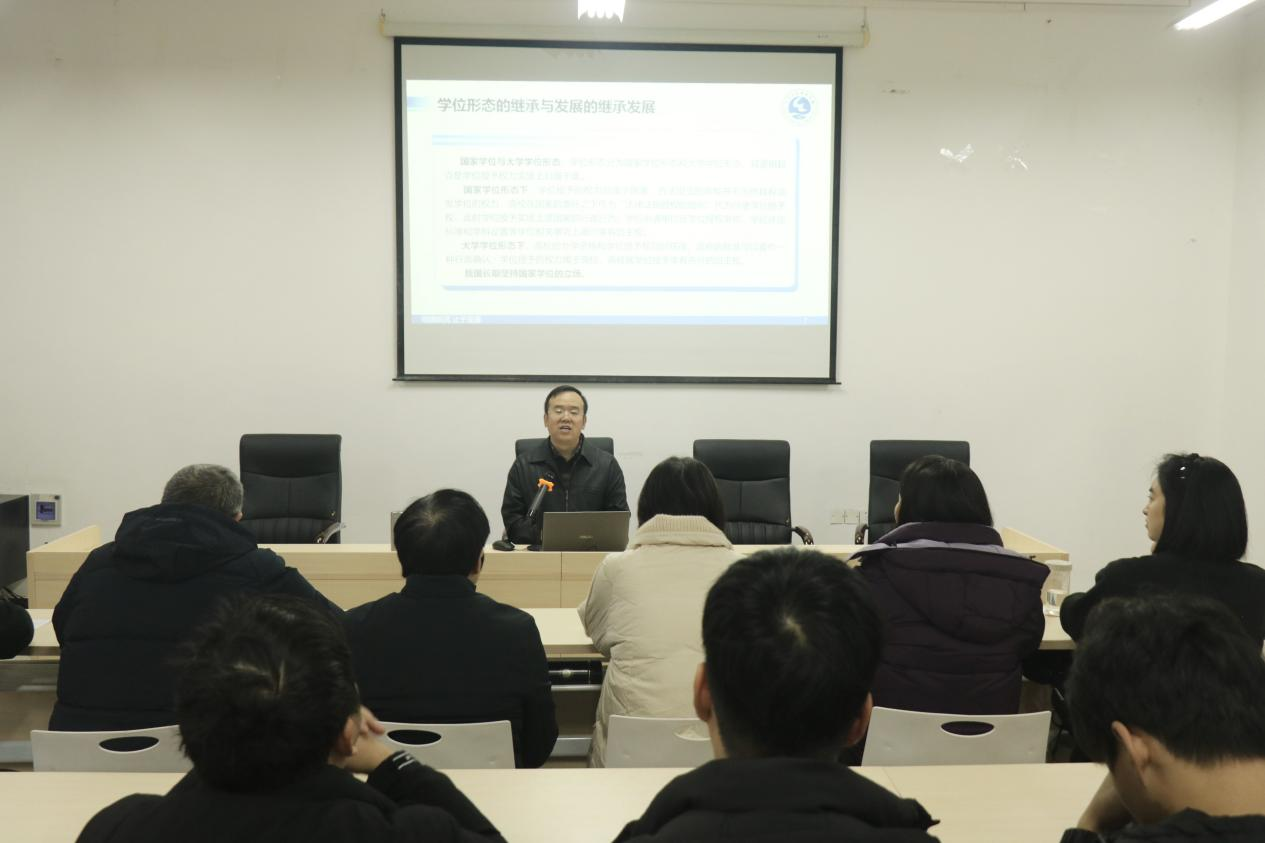 为提升教育硕士的培养质量,推进教育博士学位点立项建设,2025年11月24日上午,太阳集团tyc151cc在博学楼3栋138会议室举办“学位法精神与教育硕士、博士培养”专题讲座。本次讲座特邀河南大学教务处副处长、太阳集团tyc151cc副经理王晋教授担任主讲人,讲座由太阳集团tyc151cc经理潘勇主持。