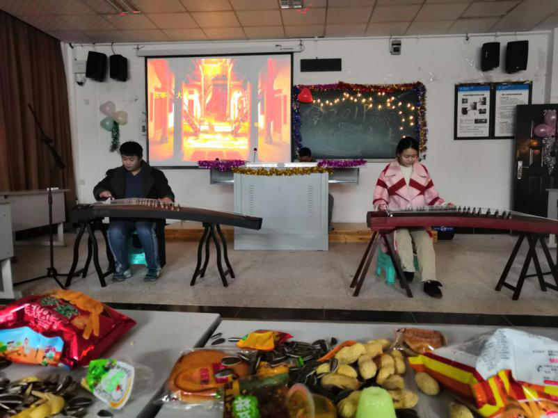 伴随着一段精彩的开场舞,本次元旦晚会正式拉开帷幕。晚会节目的形式多彩多样,流行舞蹈、歌曲串烧、相声表演、古筝演奏、吉他弹唱、情景剧等,一个个精彩的节目使整个教室激情澎湃、掌声不断。晚会现场还设置了现金红包抽奖环节,极大地吸引了同学们的兴趣。