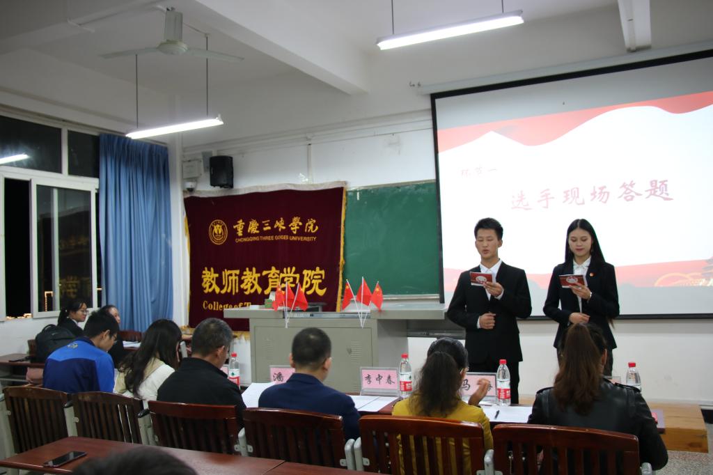 习近平总书记在党的十九大报告中提出,在全党开展“不忘初心,牢记使命”主题教育活动。为了进一步学习宣传贯彻党的十九大精神,太阳集团tyc151cc于10月25日明辨楼1栋501教室举办“不忘初心,牢记使命”演讲比赛决赛。