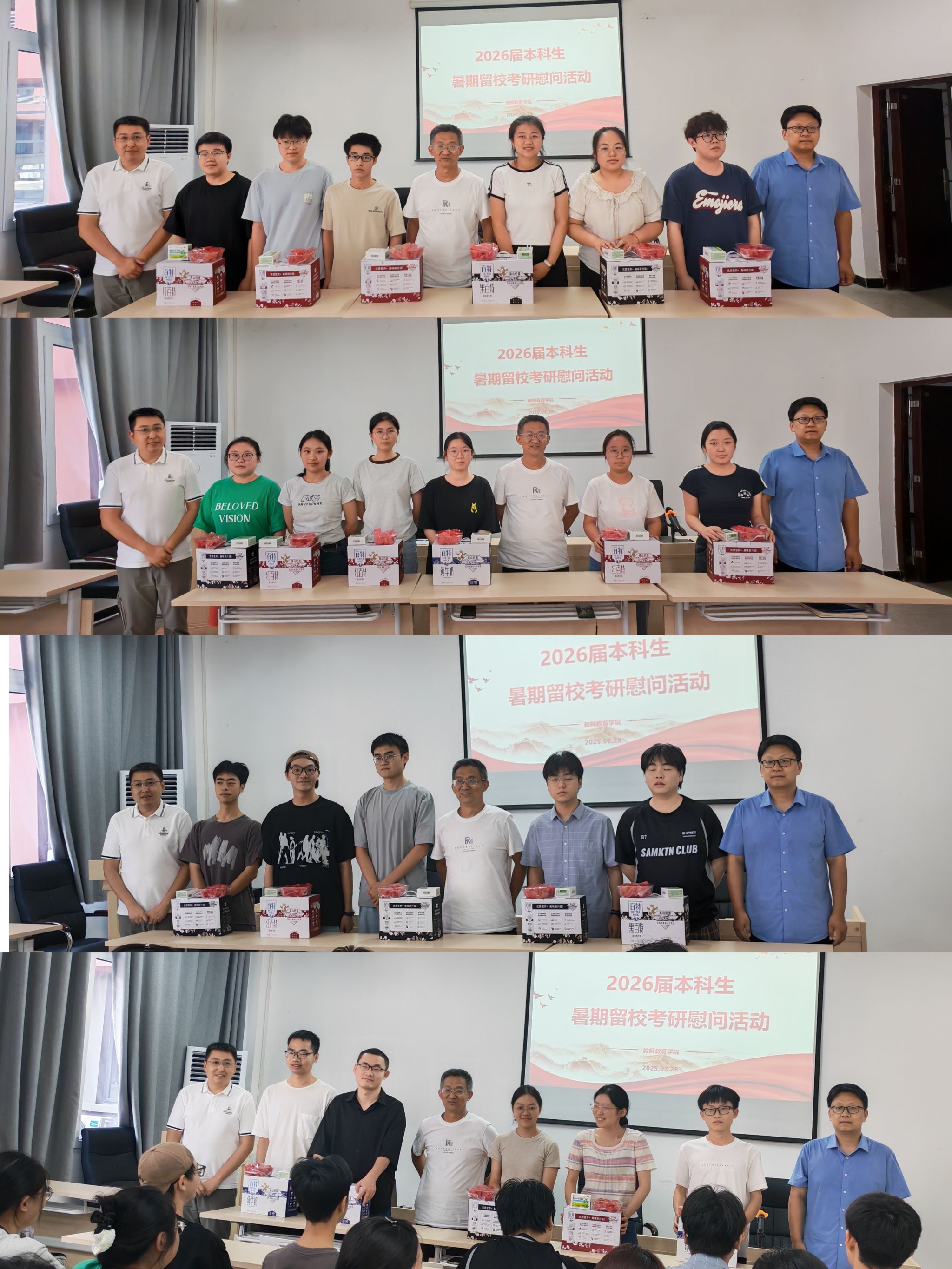 7月28日上午,太阳集团tyc151cc在博学楼3栋138会议室举行暑期留校考研员工慰问活动。经理潘勇,副经理黄成毅,毕业班辅导员邓峥嵘和2022级留校考研的员工参加。活动由副经理许刚主持。