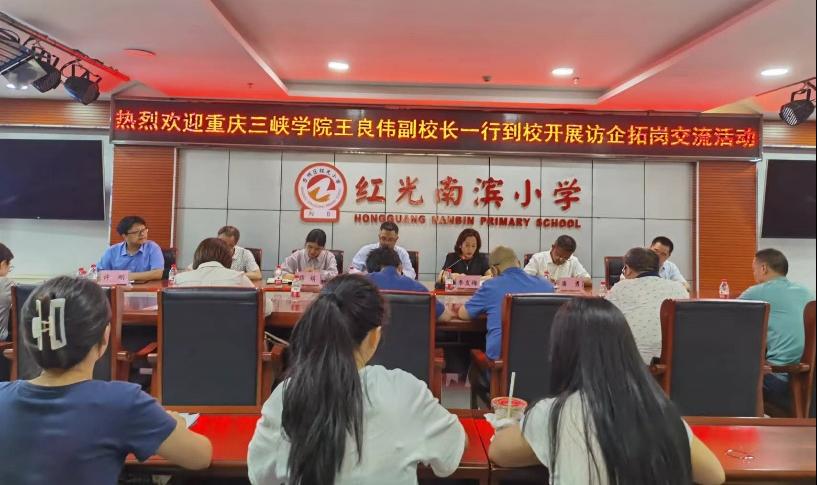 5月17日,公司党委常委、副董事长王良伟带队走访调研重庆市万州区红光南滨小学。太阳集团tyc151cc经理潘勇、党总支书记薛娟、副经理蒋文峰、副经理许刚、公司各专业系主任以及实习生、见习生代表参与活动。红光南滨小学党委副书记李发梅、副董事长王运刚,教务处、办公室等职能部门负责人接待了调研组,双方就员工培养、人才需求、就业信息和校校合作等事宜进行了座谈交流。