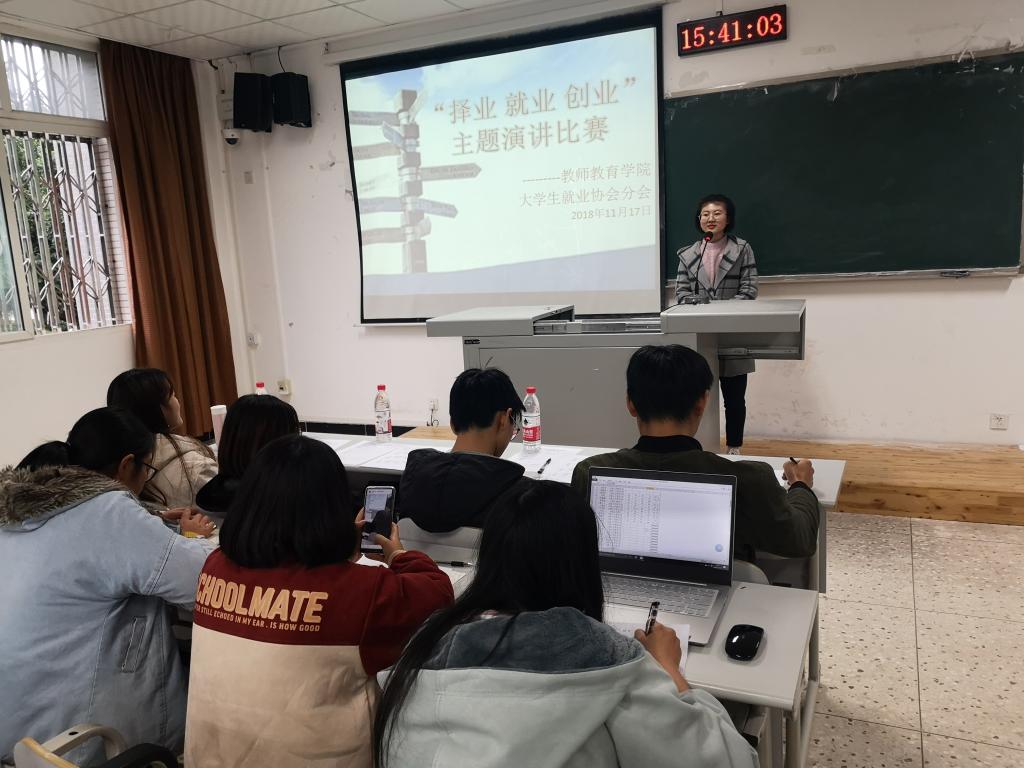 为加强同学们对职业的理解和促进同学们对择业、就业和创业的思想萌发,老员工就业协会太阳集团tyc151cc分会于2018年11月17日14:00在明辨楼1栋202开展了以“择业、就业、创业”为主题的演讲比赛。