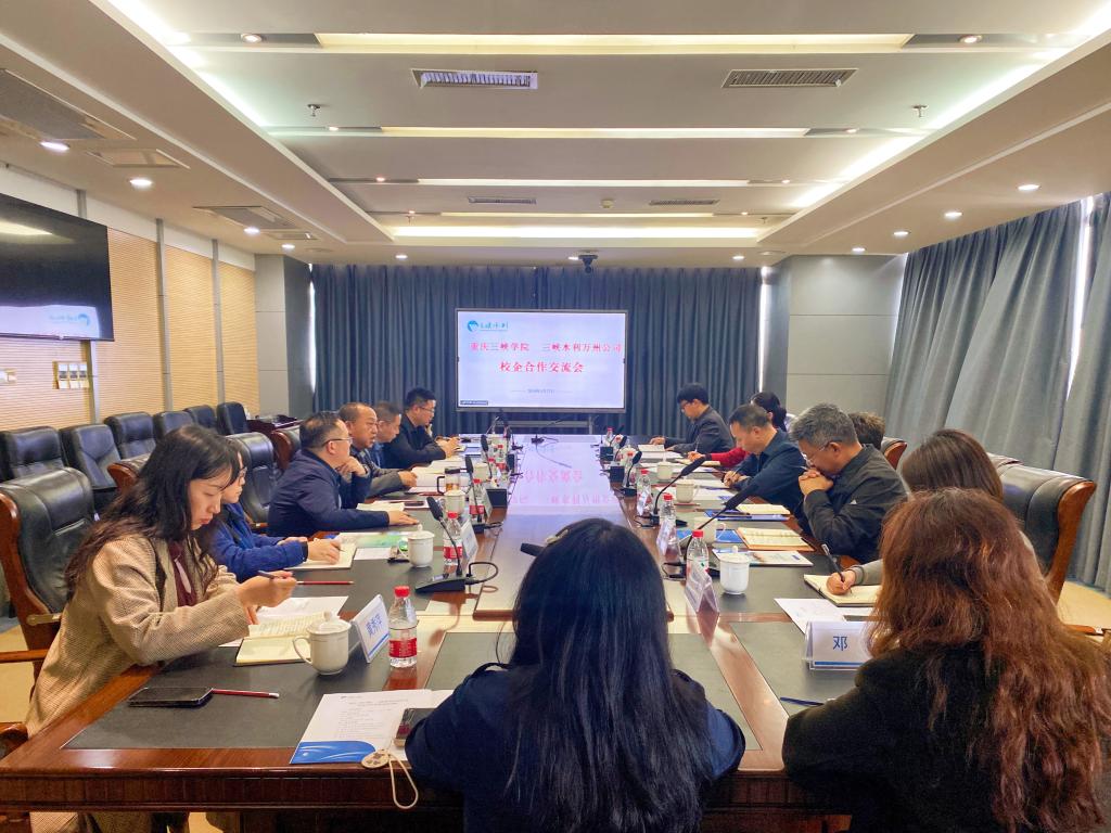 校企合作交流座谈会在观看三峡水利万州公司2023年度工作宣传片中拉开序幕。三峡水利万州公司纪委书记张小竞介绍了公司的基本情况。公司党总支书记薛娟、经理潘勇就公司发展和专业特色等方面分别发言,他们谈到,公司对人才培养需要做到职前培养、职后关注,形成闭环,加强校企合作交流,了解企业所需所求,才能实现企业和公司合作共赢。三峡水利青工代表感恩母校培养,秉承校训精神,勇担时代使命,在工作岗位展示了三峡学子的优秀与担当。副董事长臧小林介绍了重庆三峡公司历史沿革、基本情况,办学特色、人才培养等,对三峡水利万州公司长期以来对公司建设发展给予的大力支持表示感谢。他指出,重庆三峡公司作为三峡库区腹地综合性应用型本科院校,旨在为地方经济社会发展培养高素质应用型人才,历年来,多名三峡学子进入三峡水利公司发展,取得了可喜成绩,公司将坚定服务地方经济社会发展为导向,与三峡水利万州公司以建立校企合作为契机,多措并举、多维贯通,进一步提高人才培养质量。