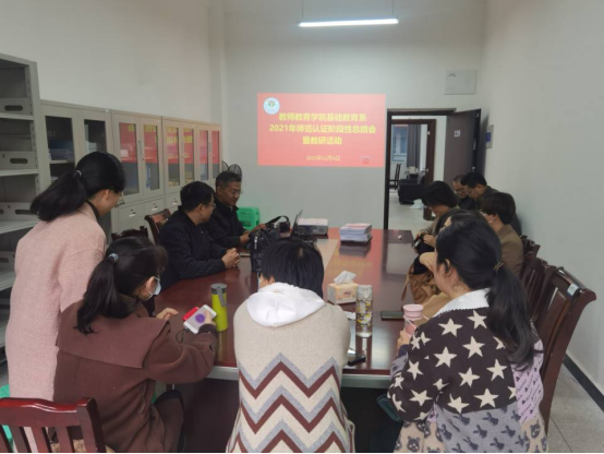 11月4日下午,太阳集团tyc151cc基础教育系在博学楼3栋129师范认证工作室召开小学教育(全科教师)专业师范认证工作阶段性总结暨教研活动会,经理潘勇、基础教育系无课的教师参加,会议由系主任罗孟祥主持。