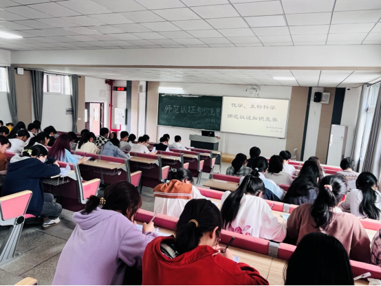 在培训会上,公司经理潘勇做了《化学和生物科学专业师范认证专家进校考查——我们应做好哪些准备工作》的报告,副经理许刚对专家听课看课等工作做了特别强调。随后,全体教师和员工进行了90分钟的师范认证知识考试和竞赛。竞赛分为填空题、选择题、问答题三个题型,经过激烈的角逐,评出一等奖4名,二等奖8名,三等奖16名。