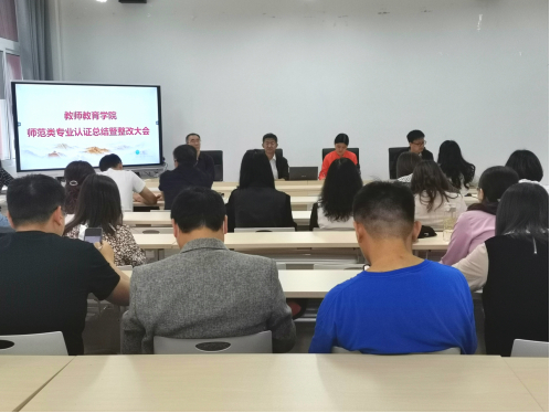 6月8日下午14:30,公司在博学楼3栋138会议室召开师范类专业认证总结暨整改大会,会议由副经理蒋文峰主持,全体教职工参加。